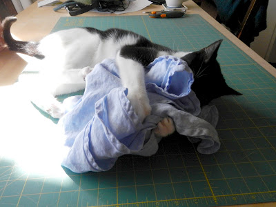 My available natural dyestuff collection has expanded. In addition to the already collected Lingularia flowers, Arborvitae seedpods, Mahonia berries, and cherries, I have been collecting more Coreopsis, and have also collected large bags of Perovskia blossoms and dried blue Hibiscus flowers. These last two were readily available and I have seen vague mentions of their suitability as dye plants. The Perovskia is from the humongous shrubs in my front yard and the Hibiscus flowers are from the University campus (I swear I only took the dropped flowers!). I had to compete with the bees to collect the Perovskia, yet managed to collect 12.3oz without stripping enough branches to make my harvest even noticeable (or getting stung). I may go back and collect more, since I have no information on how much is required to get usable color. The Perovskia is so aromatic that my eyes hurt for the rest of the evening. I don't think I will be simmering it inside.